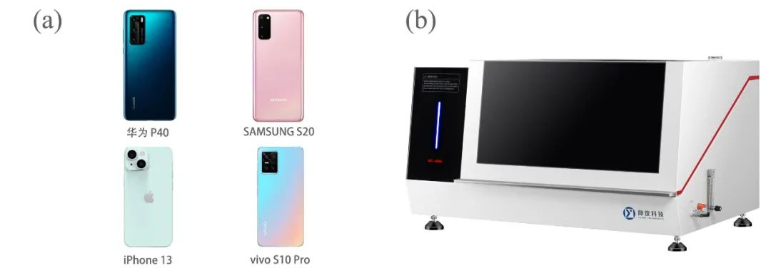 圖1 (a)手機(jī)樣品及(b) BIC-400A等溫量熱儀示意圖