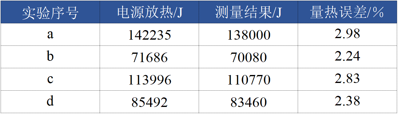 最后,通過對(duì)功率曲線進(jìn)行積分,可對(duì)發(fā)熱量的真實(shí)值和測(cè)量值進(jìn)行對(duì)比。如表1所示,4種模型反應(yīng)的量熱誤差均在2-3%左右,證明RC HP-1000A在不同反應(yīng)工況下都能達(dá)到較高的量熱準(zhǔn)確性。