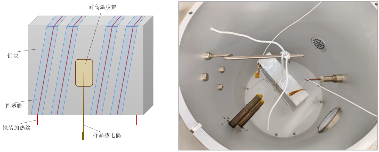 校準實驗所需時長與樣品質(zhì)量相關。280Ah磷酸鐵鋰電芯等大型電芯所需時間較長,可能達到3-5天甚至1周以上,極大拖延了實驗進度?;谏鲜鰡栴},本文提出加熱絲輔助加熱的溫差基線實驗方案,在樣品表面纏繞加熱絲,并利用加熱絲加熱縮短樣品升溫時間,能夠大幅降低溫差基線實驗時長,顯著提升實驗效率。