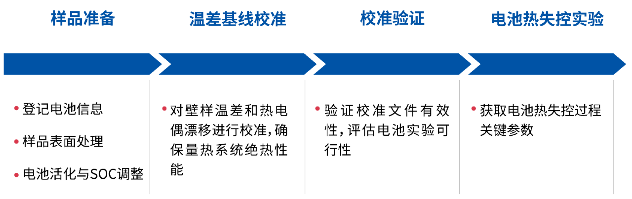 電池絕熱量熱儀是測試鋰電池絕熱熱失控特性的主要儀器,為獲得最準確和有效的測試數(shù)據(jù),完整的測試流程包括樣品準備、溫差基線校準、校準驗證和電池測試四個步驟。其中溫差基線校準能夠確保儀器的絕熱性能,是提高儀器檢測靈敏度和準確性的重要操作步驟。