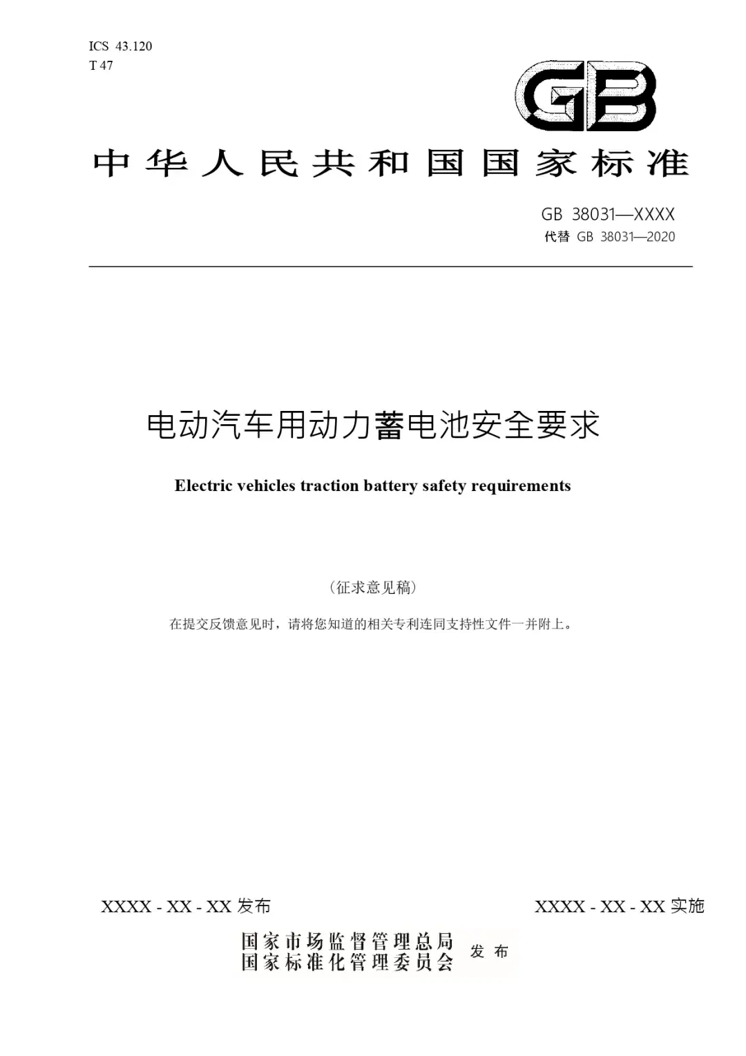 隨著新能源汽車保有量快速增加,電動汽車起火事故仍時有發(fā)生。通過對近年來電動汽車安全事故的經(jīng)驗總結(jié),行業(yè)對于動力電池在實際應(yīng)用場景下的失效機(jī)制也有了進(jìn)一步的認(rèn)識。基于此,有必要修訂完善GB 38031《電動汽車用動力蓄電池安全要求》,進(jìn)一步提升安全要求,筑牢動力電池安全底線,維護(hù)消費者生命財產(chǎn)安全。