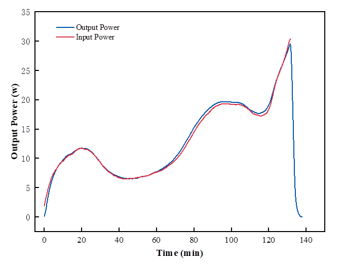 下面我們利用校準(zhǔn)裝置模擬電池真實(shí)的充放電產(chǎn)熱特征曲線,并進(jìn)行儀器性能驗(yàn)證。觀察圖4發(fā)現(xiàn),儀器測(cè)定的產(chǎn)熱功率曲線變化趨勢(shì)與恒流源輸出功率曲線幾乎完全重合,且樣品產(chǎn)熱量的測(cè)量誤差小于1.5%,證明BIC-400A電池等溫量熱儀能夠有效表征充放電過程電芯產(chǎn)熱隨SOC變化規(guī)律,并具備優(yōu)異的量熱準(zhǔn)確性。