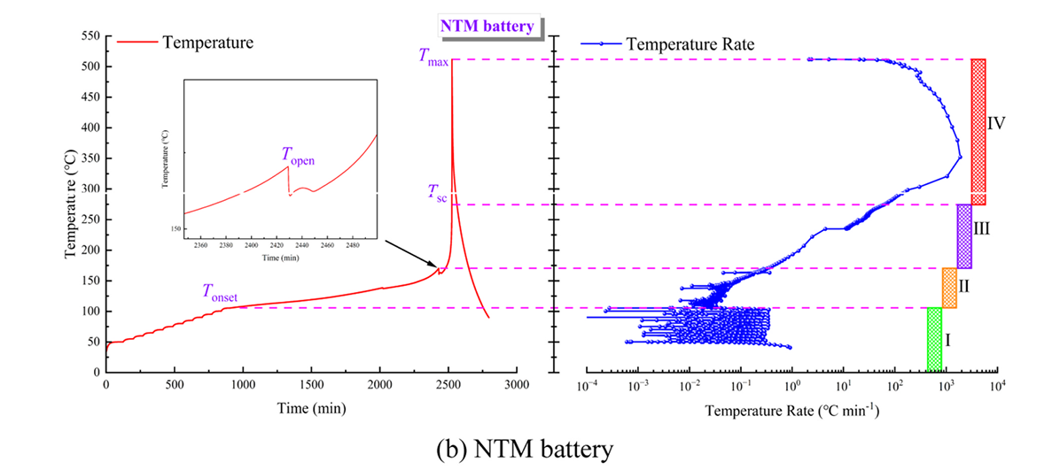 本研究使用仰儀科技小型電池絕熱量熱儀BAC-90A,對三種18650電池(以NaxTMO2[NTM]為陰極的鈉離子電池和兩種以LiFePO4[LFP]、LiNi0.5Co0.2Mn0.3O2[NCM]為陰極的鋰離子電池)的熱失控特性及危險性進行了研究對比分析。
