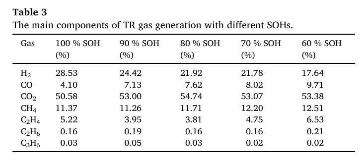 本研究通過定性與定量分析,系統(tǒng)闡述了低溫老化條件下不同SOH鋰離子電池的熱失控產(chǎn)氣特性與噴射火行為特征。實(shí)驗(yàn)獲取了包括最高溫度、觸發(fā)時(shí)間、產(chǎn)氣成分、產(chǎn)氣量、爆炸風(fēng)險(xiǎn)指數(shù)及噴射火擴(kuò)散面積等關(guān)鍵參數(shù),全面剖析了不同SOH鋰離子電池的安全性能表現(xiàn)。上述研究成果將為提升電池在儲(chǔ)能場(chǎng)景及梯次利用過程中的安全性提供重要理論依據(jù)與技術(shù)支撐。