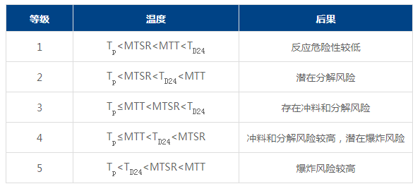 4. 失控反應最大反應速率到達時間TMRad:在絕熱條件下,失控反應到達最大反應速率所需要的時間,可以通俗地理解為致爆時間;